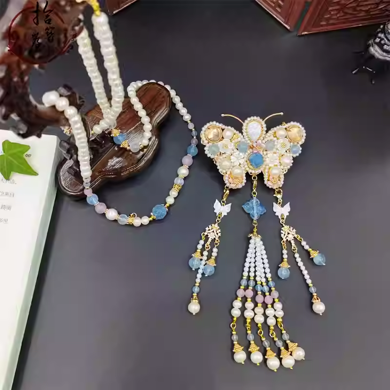 Original design, handmade, sapphire, butterfly-shaped court retro sweater chain, can be freely disassembled, exquisite craftsmanship, beautiful and elegant.